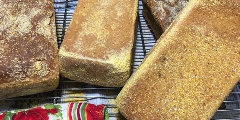 Prepare 2 bread (loaf) pans by lightly buttering the interiors and dusting the insides with cornmeal.